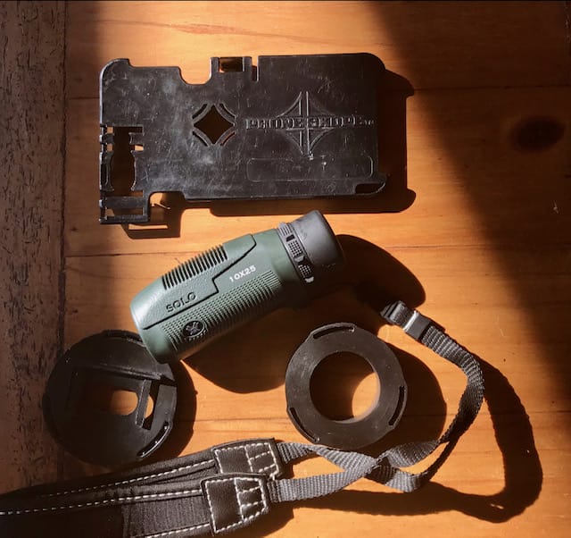 Three more, to be exact. While freehand phone photography is very doable, the added stability of a simple tripod is the straw that stirs the drink. The best part is that, though higher-end tripods are a good investment, so are the more rudimentary ones. There are a multitude of reasons to use a tripod. Simply put, they reduce image-sabotaging vibration caused by cold weather, excitement from seeing a magnificent game animal, or even too much coffee. Whether you spend $30 or hundreds, tripods telescope to account for different heights and slopes and have universal bolts (1/4”x20) that accept smartphone mounts and digiscoping equipment. Finally, they’re lightweight and reduced down to a manageable size for carrying.
