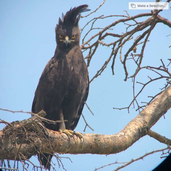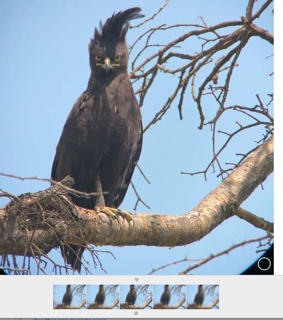 When you open your picture in burst mode, like this one of a long-crested eagle, in your photos app, you will see a little box up in the corner. When you click on that, you will see all the photos you took to make that one photo.