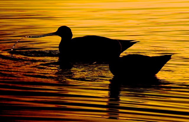 Use your smartphone’s ability to lock exposure to capture the colors of sunset and get silhouette shots of the unique shapes of shorebirds like these American Avocets in Titusville, Florida.