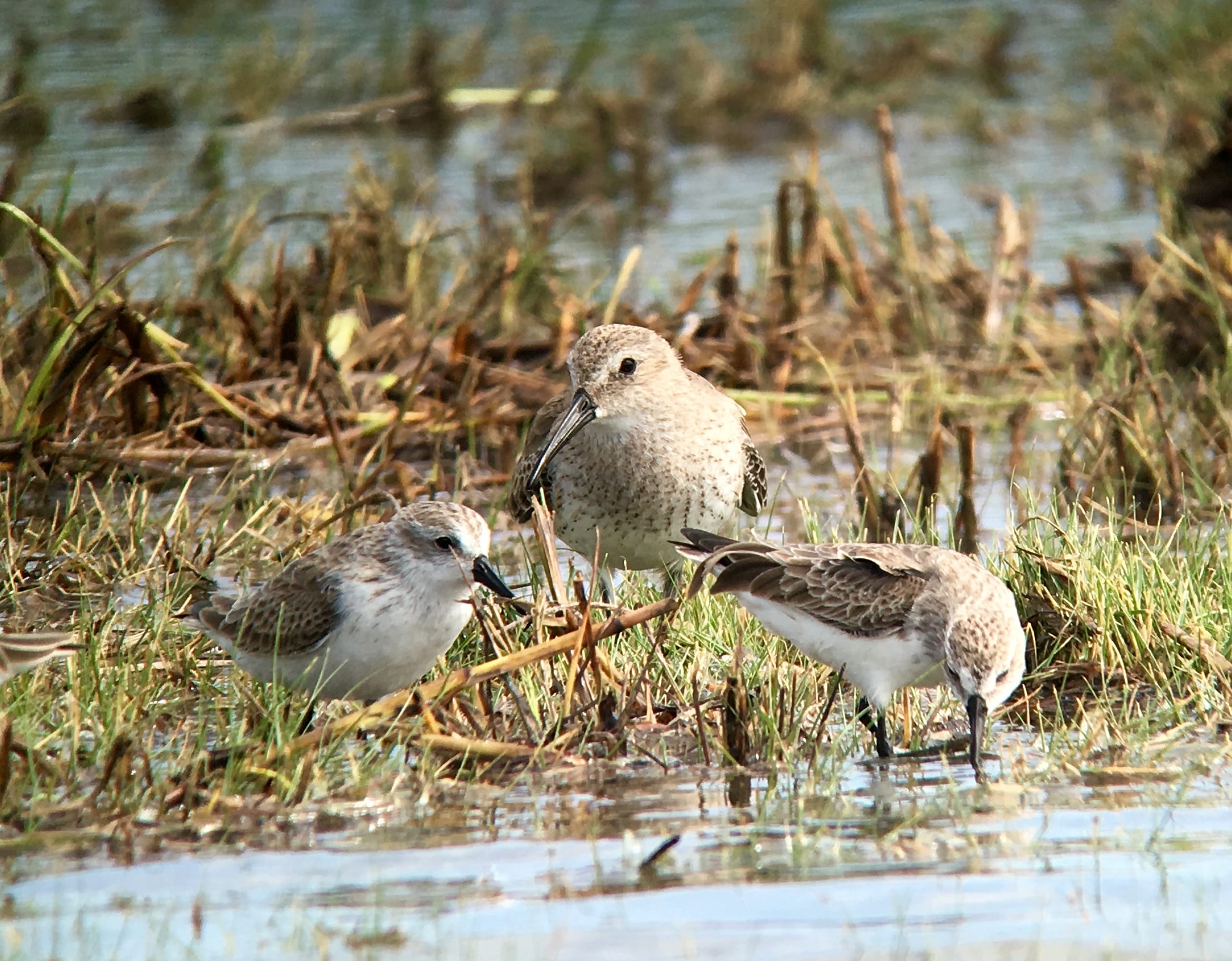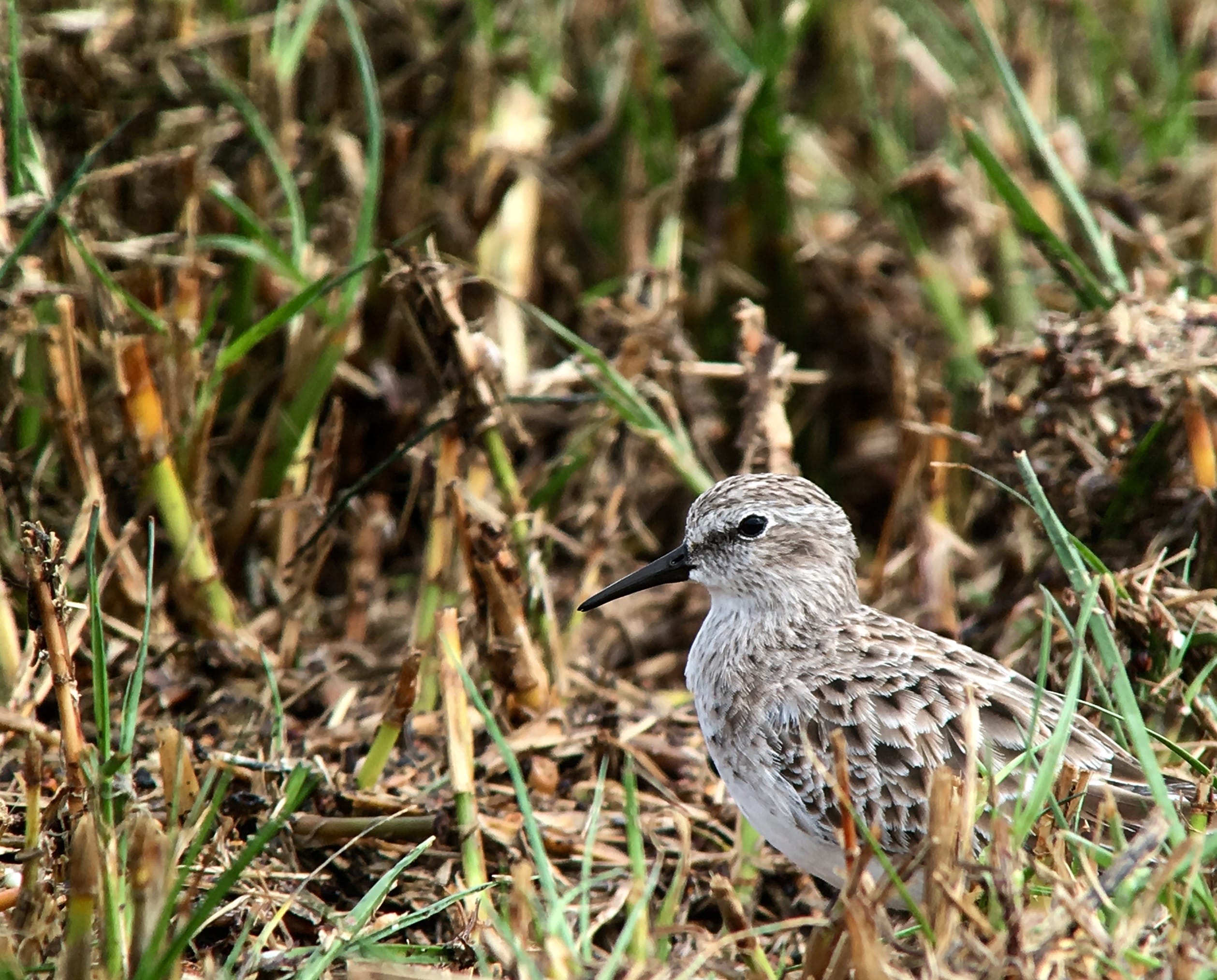 Least Sandpipers are so tiny, they easily are hidden grass. Pro-tip from my friend Doug: Ask yourself if the bird is super tiny and the legs are lighter than the beak? If the answer is yes, it’s a Least Sandpiper.