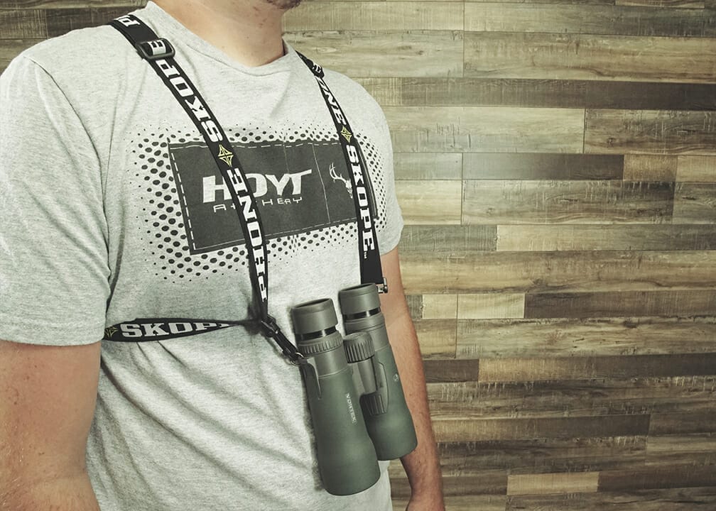 Phone Skope’s Bino Harness features a cross over the shoulder design that eliminates bounding binoculars, keeping them secure to your chest and works great for hiking, hunting, riding quads and horses, and more. Our bino system retains elasticity and will not stretch out like imported brands, is fully adjustable with elastic straps that allow the binoculars to slide up and flex out while in use, and features quick release hooks, which allow for easy removal of binoculars.