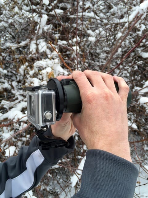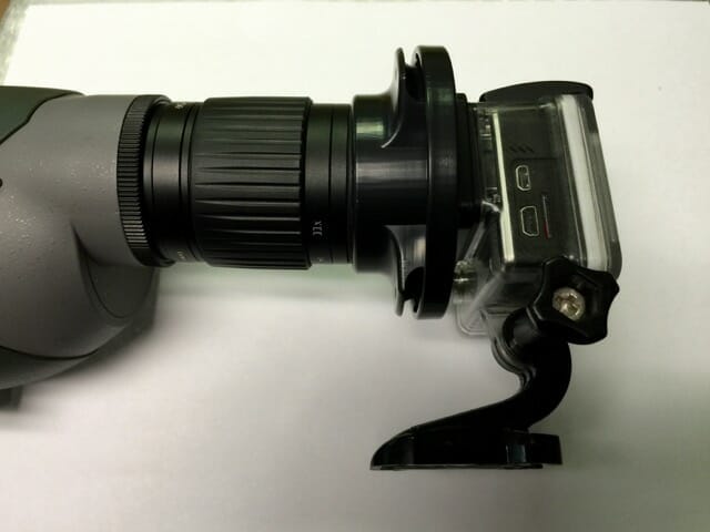 Digiscope with your GoPro Hero 3+ or 4. This adapter plate slides over the original GoPro housing cutout using a friction-fit design. Pair it with your Phone Skope optic adapter (sold separately) to start filming through your optics.