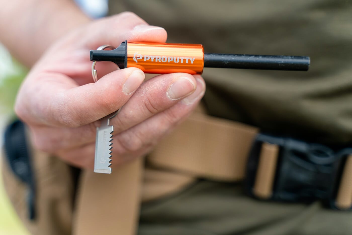 EMERGENCY FIRESTARTER KIT: Starting a fire is challenging in the wind, rain, and poor weather. That’s why we created an efficient, non-toxic fire-starting kit for every survivalist, adventurer, hunter, and outdoorsman. This kit has everything you need to start a fire — a MINI Mega Inferno Ferro rod with storage space for putty, 3 Single Use Packs of our PYRO Putty, and a multitool knife that can be used as a striker.