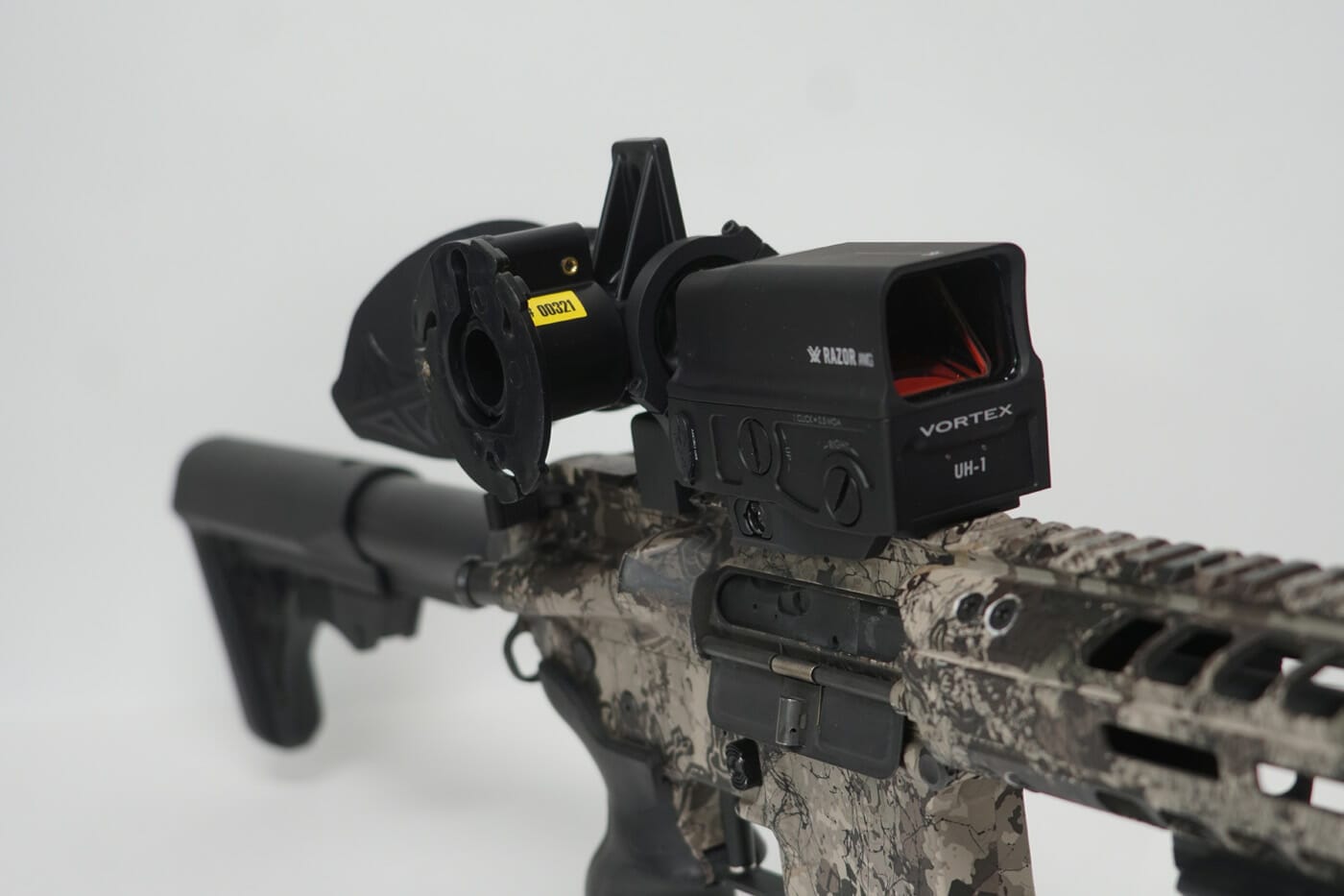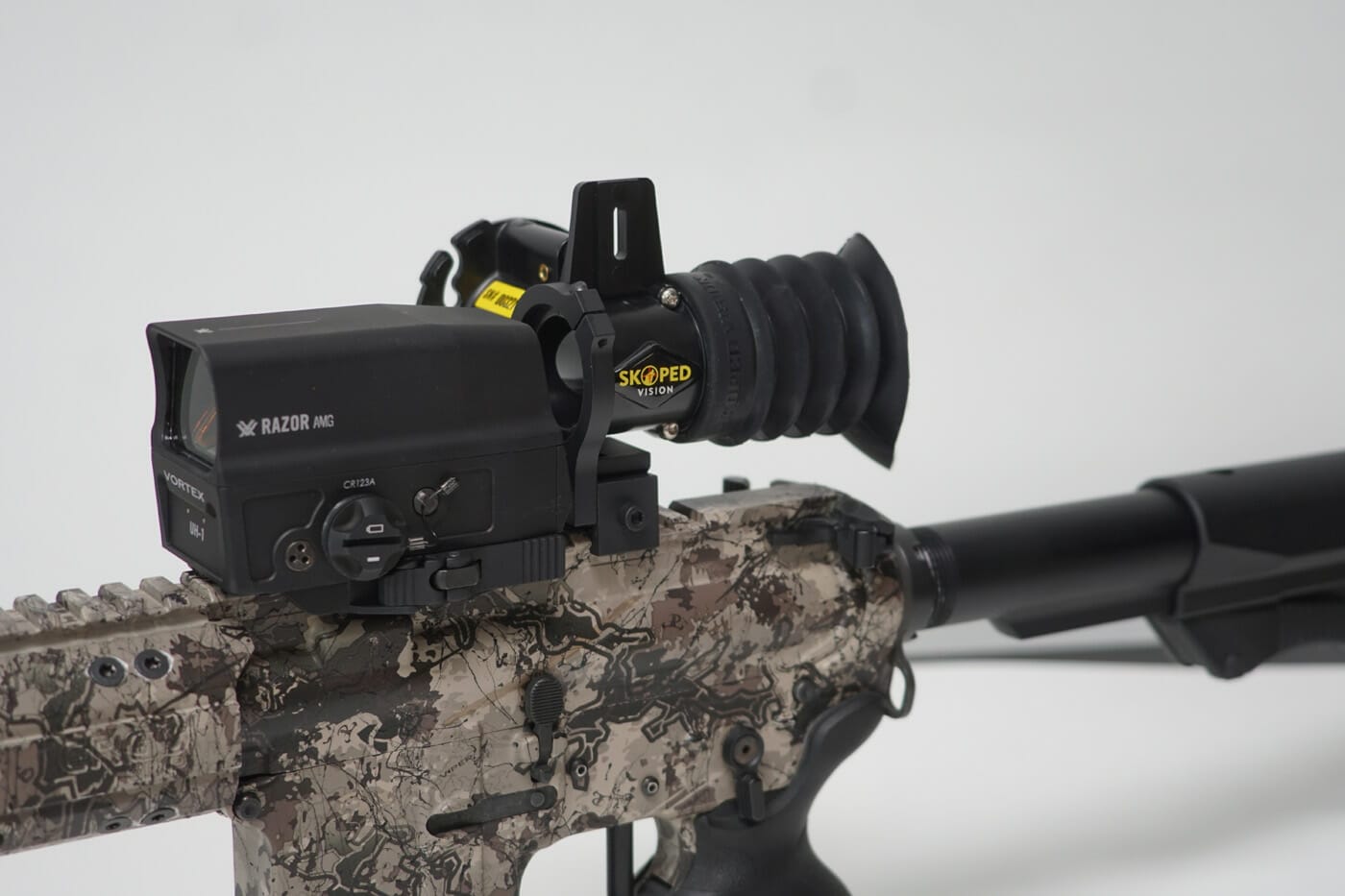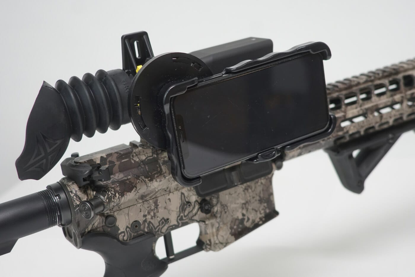 The smartphone will be mounted on the side of the sight , giving you an unobstructed view through the scope while shooting. There is very little, if any, light or optic quality loss with Skoped Vision as the glass inside the adapter is manufactured with the utmost quality.