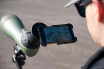 The Phone Skope adapter kit connects your smartphone to spotting scopes, binoculars, and other optics.